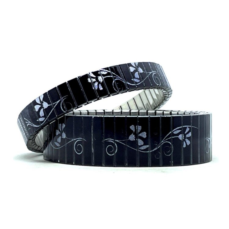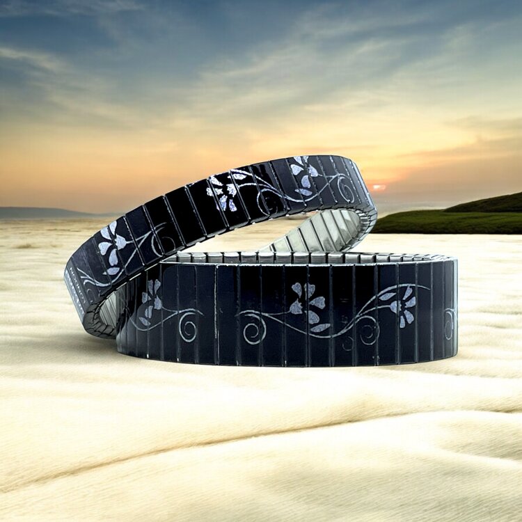 Stainless steel designer bracelet 10mm handmade in London - Solo vintage black nude flower Metallic