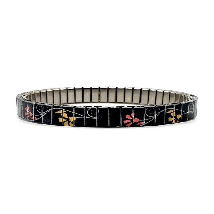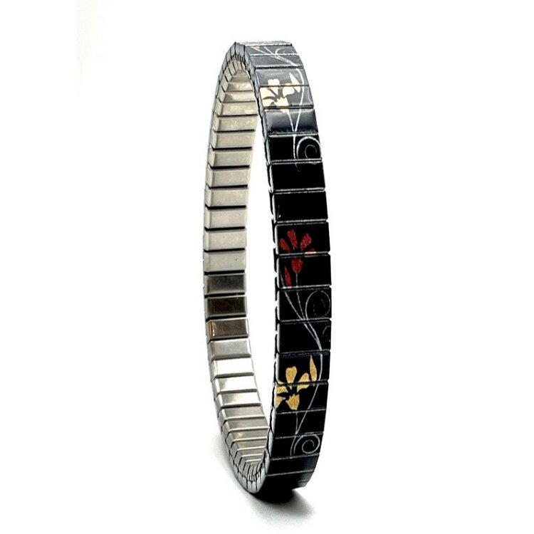 Stainless steel designer bracelet 6mm handmade in London - Solo vintage black nude golden flower Metallic