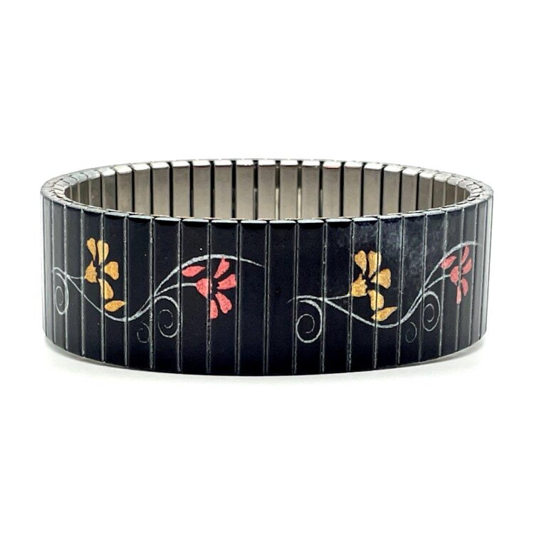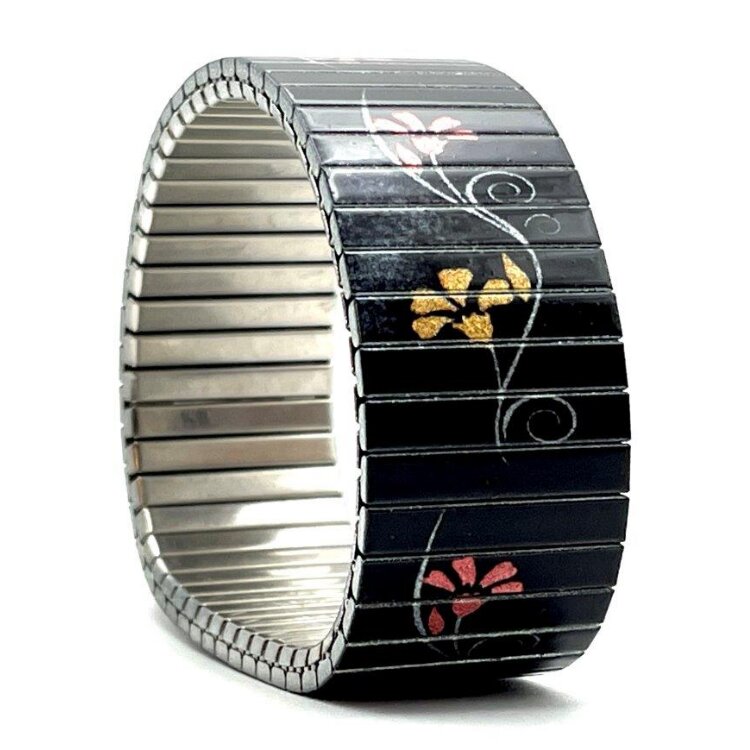 Stainless steel designer bracelet 22mm handmade in London - Solo vintage black nude golden flower Metallic