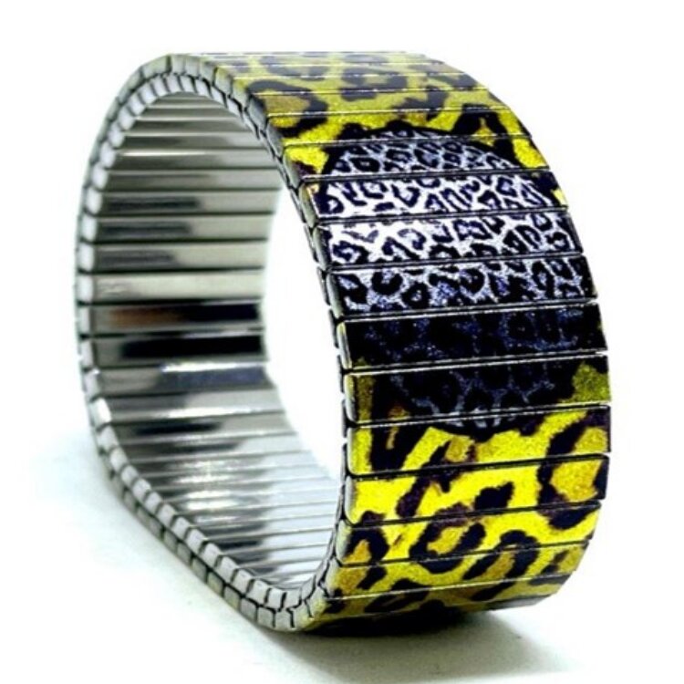 Stainless steel designer bracelet 22mm handmade in London - Spots tiger vintage yellow and grey Metallic
