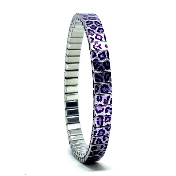Stainless steel designer bracelet 6mm handmade in London - Spots tiger girly pink Metallic