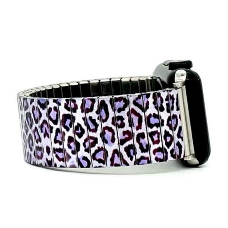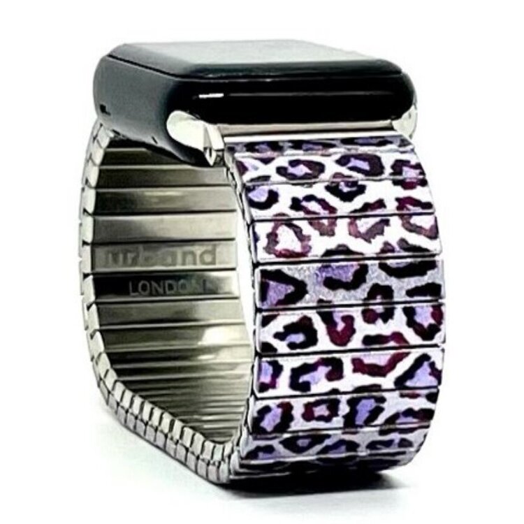 Stainless steel designer bracelet for smart watch 18mm handmade in London - Spots tiger girly pink Metallic