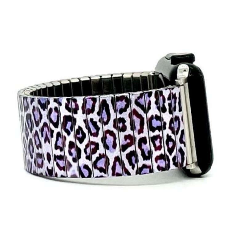 Stainless steel designer bracelet for smart watch 22mm handmade in London - Spots tiger girly pink Metallic