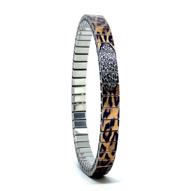 Stainless steel designer bracelet 6mm handmade in London - Spots tiger vintage copper and champagne Metallic