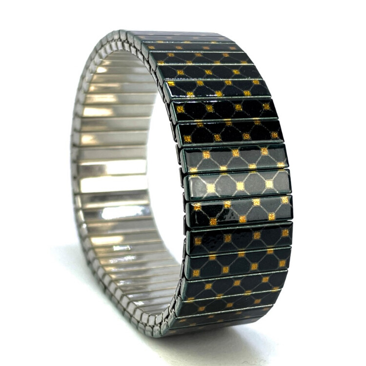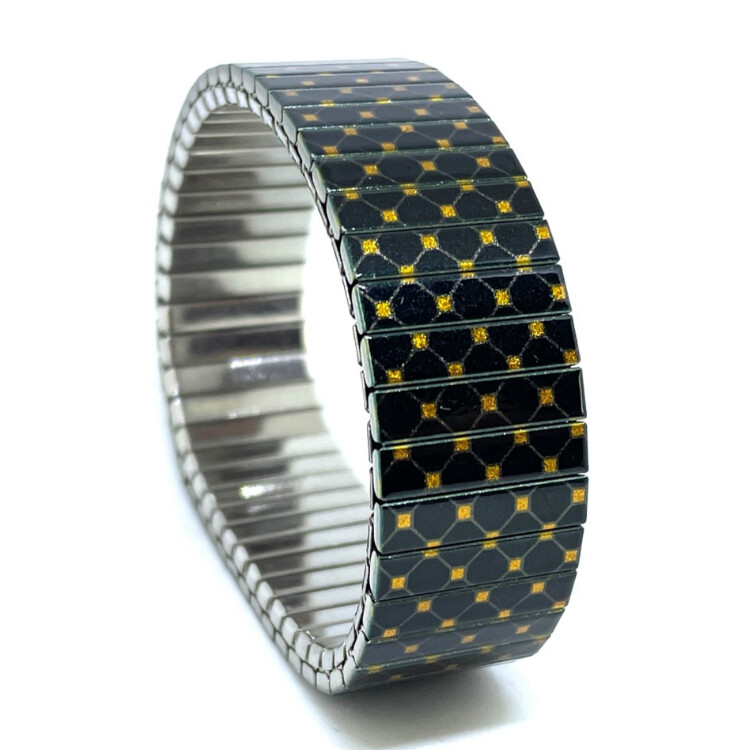Stainless steel designer bracelet 18mm handmade in London - Squares Party gold grid Metallic