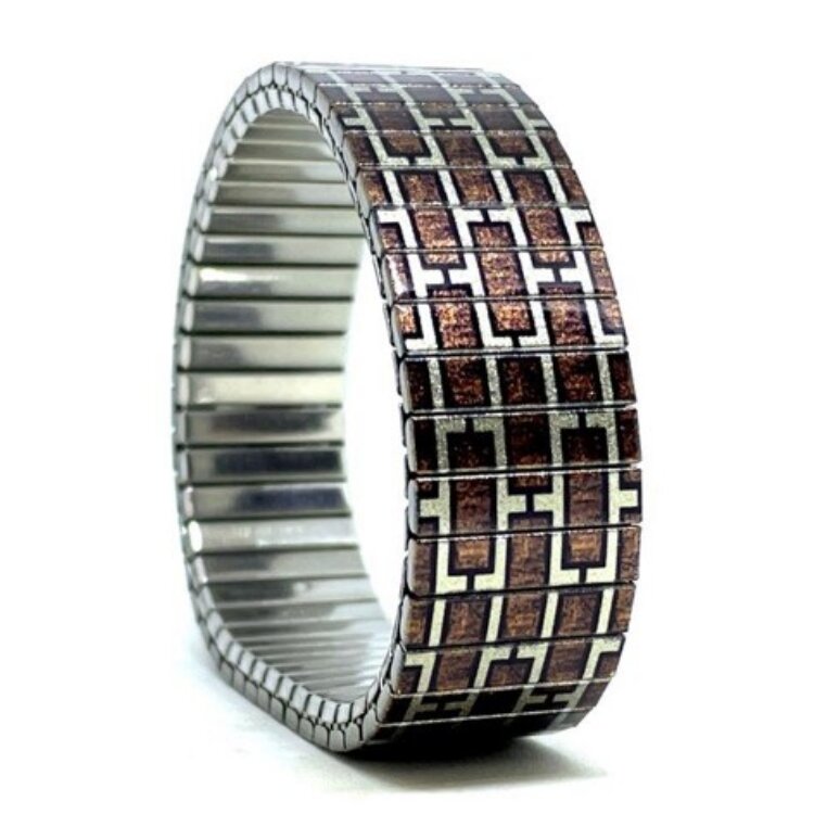 Stainless steel designer bracelet 18mm handmade in London - Squares Party brown denim links Metallic