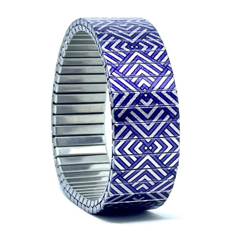 Stainless steel designer bracelet 18mm handmade in London - Squares Tiles geometric blue Metallic