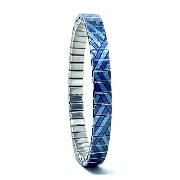 Stainless steel designer bracelet 6mm handmade in London - Squares Tiles turquoise traingles Metallic