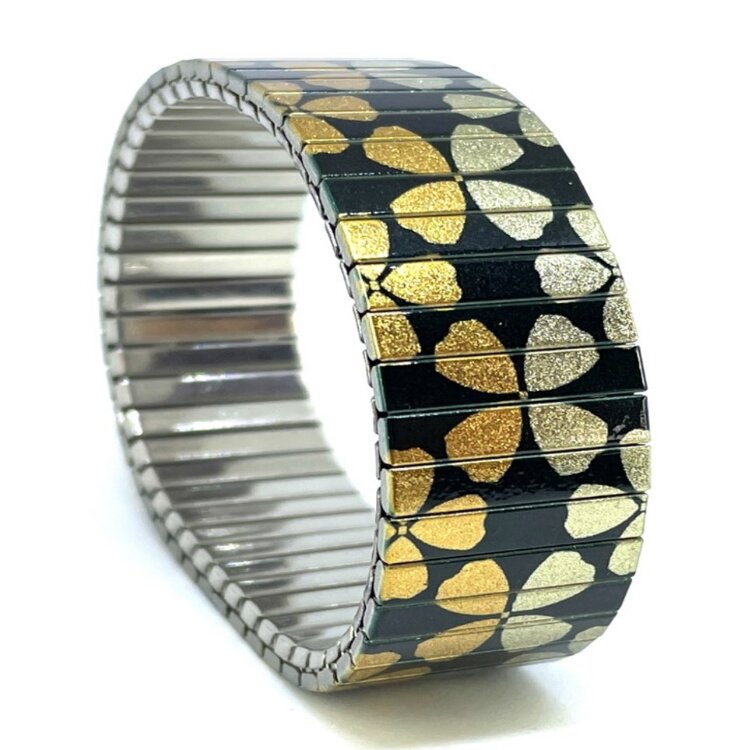 Stainless steel designer bracelet 22mm handmade in London - Stars Flowers 2in1 earthy Metallic