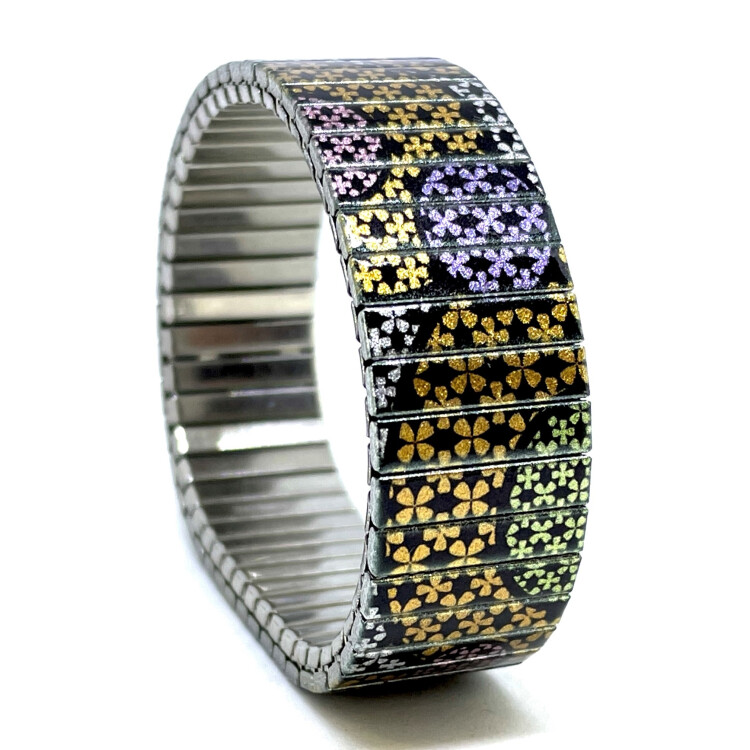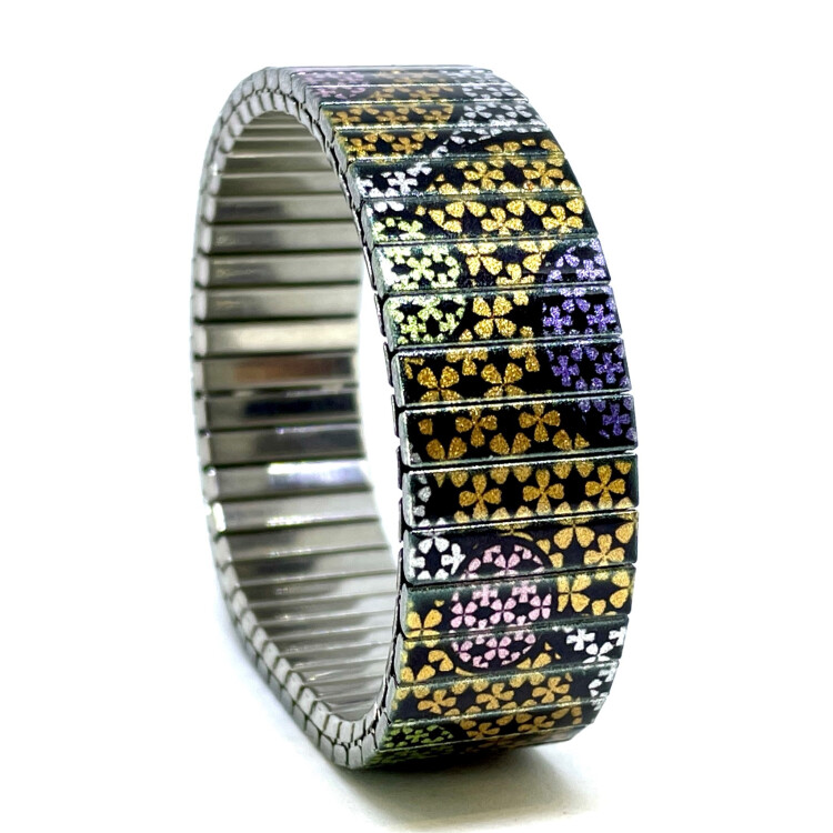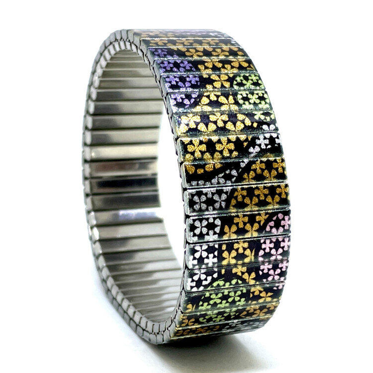Stainless steel designer bracelet 18mm handmade in London - Stars Flowers utopia Metallic