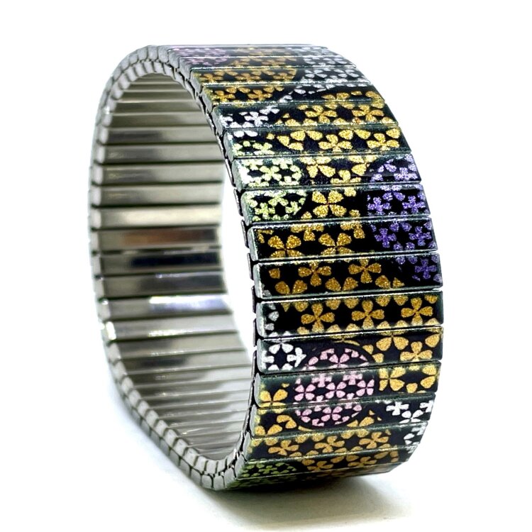 Stainless steel designer bracelet 22mm handmade in London - Stars Flowers utopia Metallic