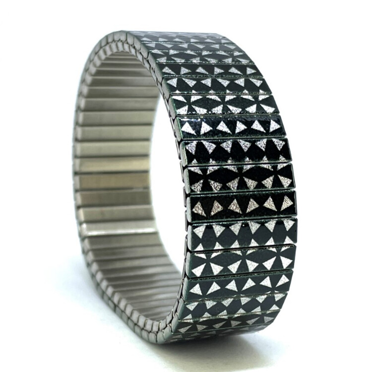 Stainless steel designer bracelet 18mm handmade in London - Stars Triangled silver harlequin Metallic
