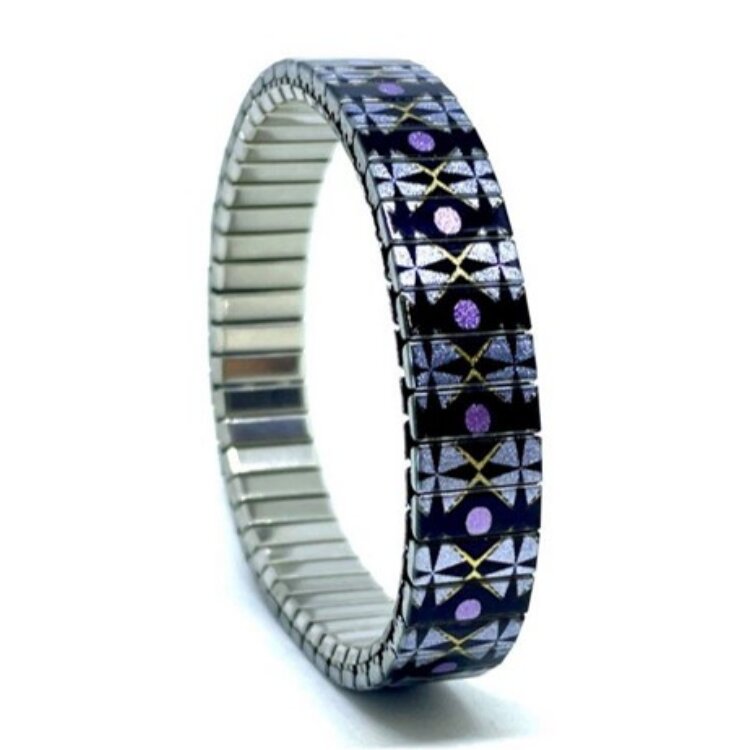 Stainless steel designer bracelet 10mm handmade in London - Stars Triangled purple blue Metallic