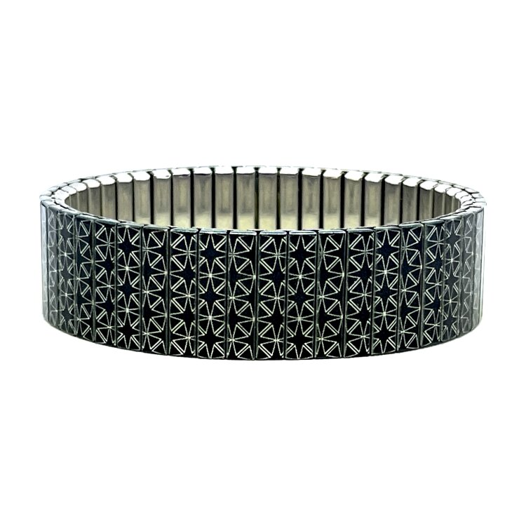 Stainless steel designer bracelet 18mm handmade in London - Stars Triangled small squares silver stars Metallic