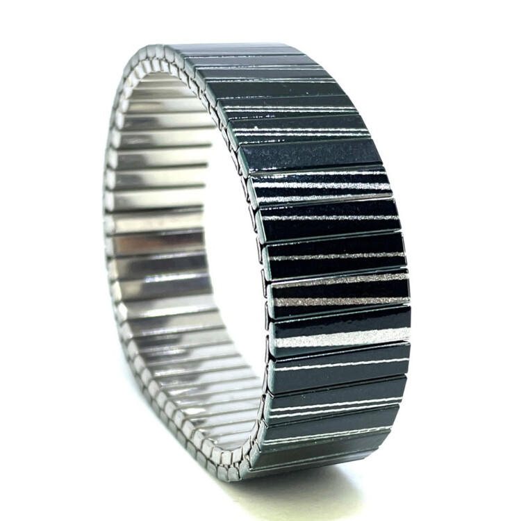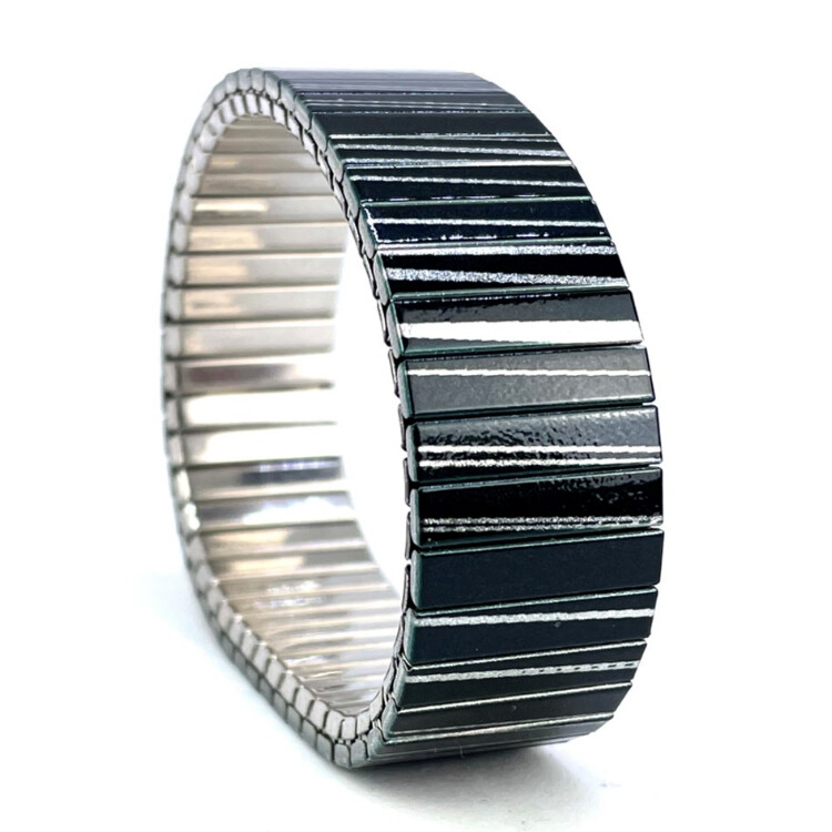 Stainless steel designer bracelet 18mm handmade in London - Stripes black barcode Metallic