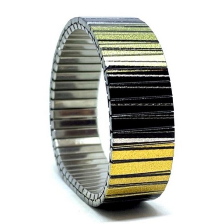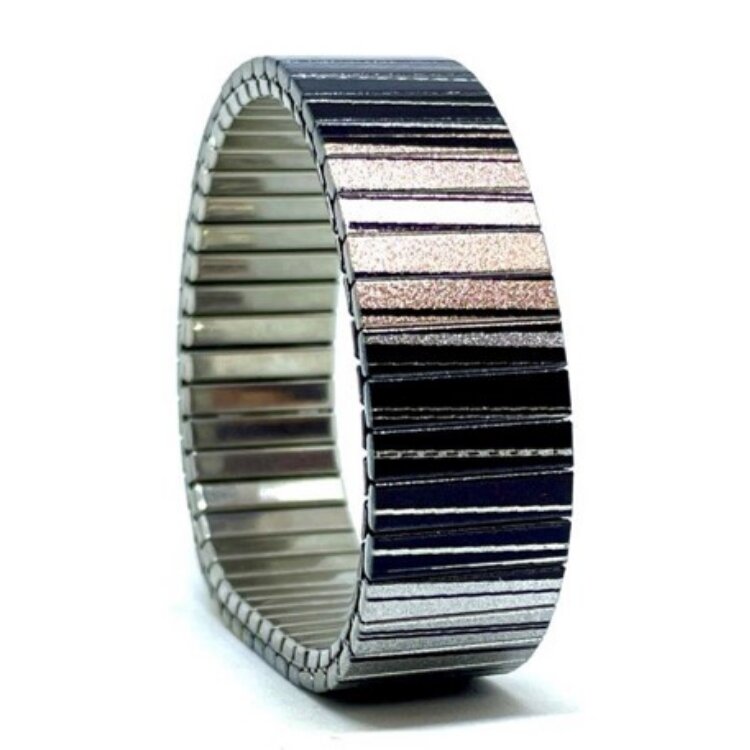 Stainless steel designer bracelet 18mm handmade in London - Stripes earthy shadow Metallic