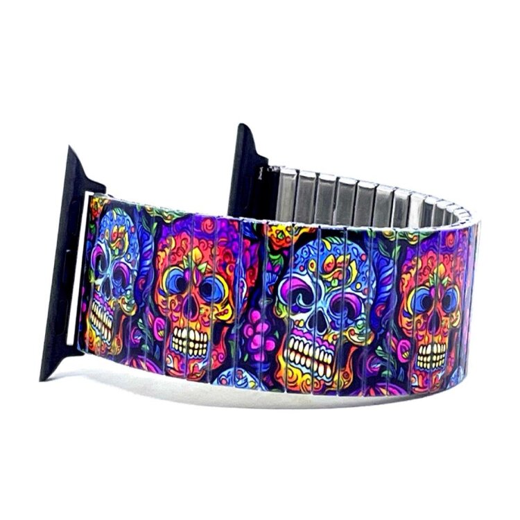 Stainless steel designer bracelet for smart watch 22mm handmade in London - Sugar Skulls hangover