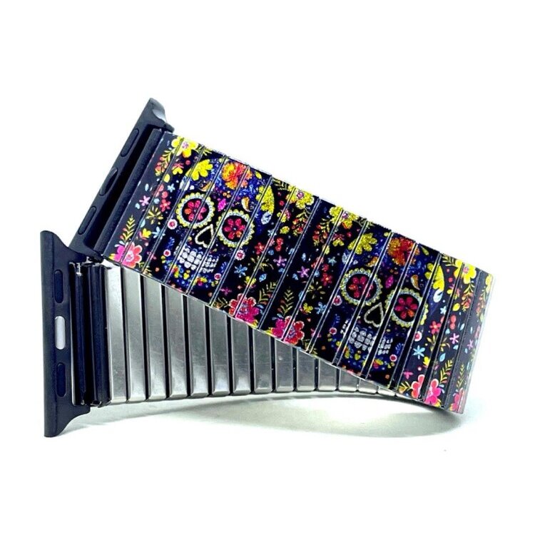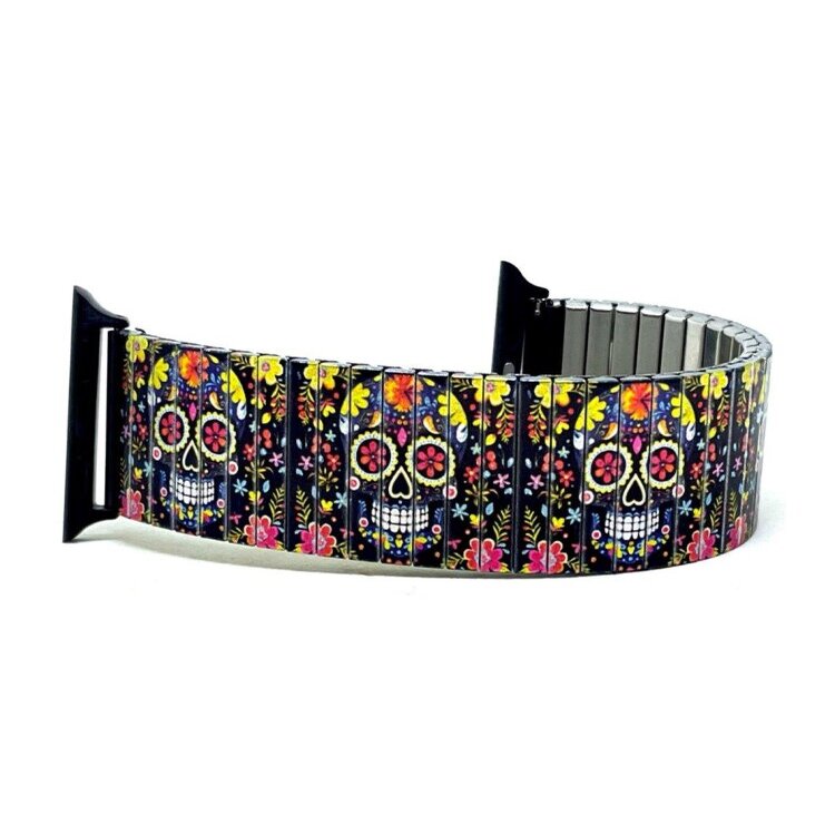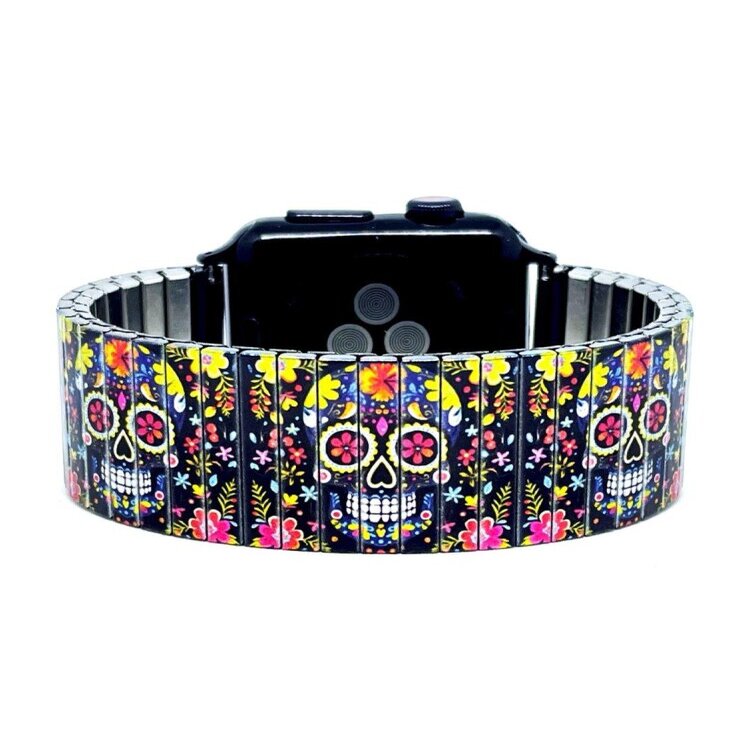 Stainless steel designer bracelet for smart watch 18mm handmade in London - Sugar Skulls black drama Metallic