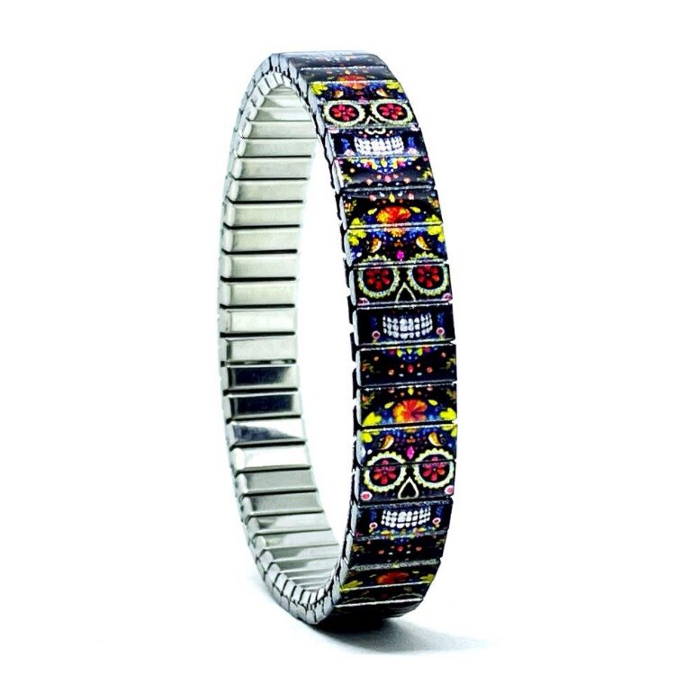 Stainless steel designer bracelet 10mm handmade in London - Sugar Skulls super black drama Metallic