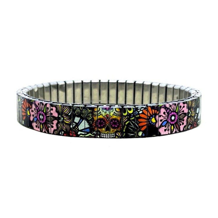 Stainless steel designer bracelet 10mm handmade in London - Sugar Skulls super fantasy Metallic