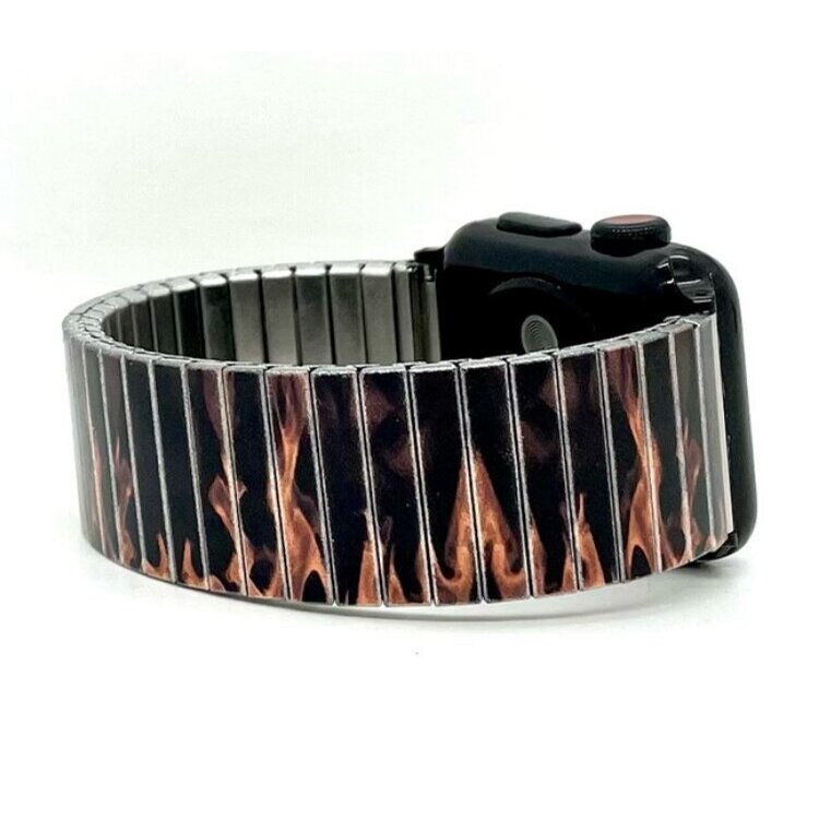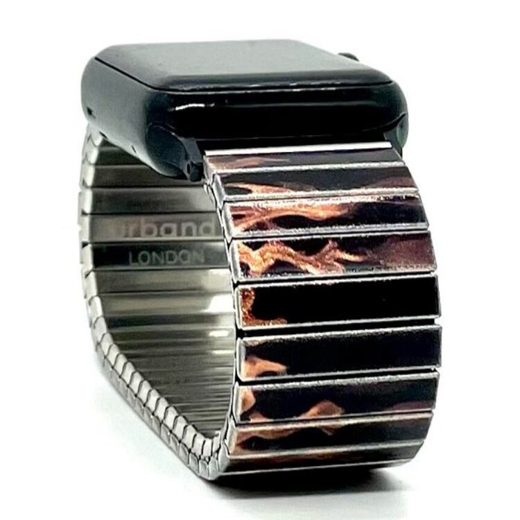 Stainless steel designer bracelet for smart watch 18mm handmade in London - Tattoo copper fire Metallic