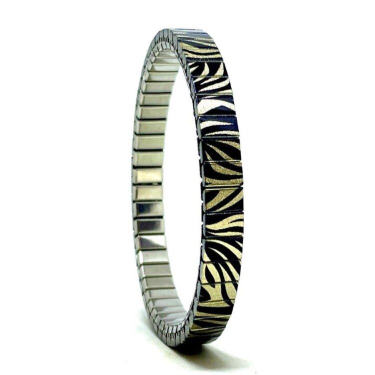 Stainless steel designer bracelet 6mm handmade in London - Tattoo gold zebra cactus Metallic
