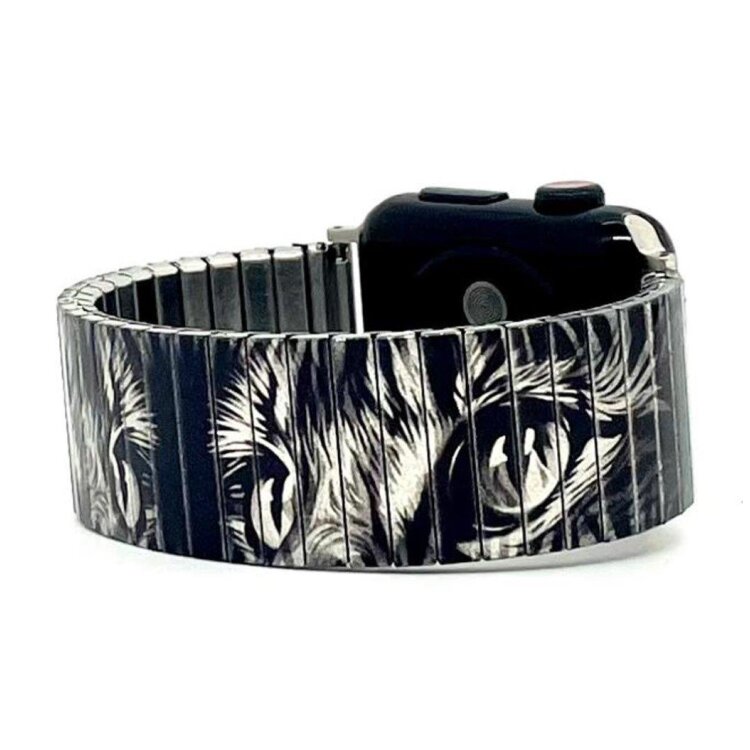 Stainless steel designer bracelet for smart watch 22mm handmade in London - Tattoo tabby cats Metallic