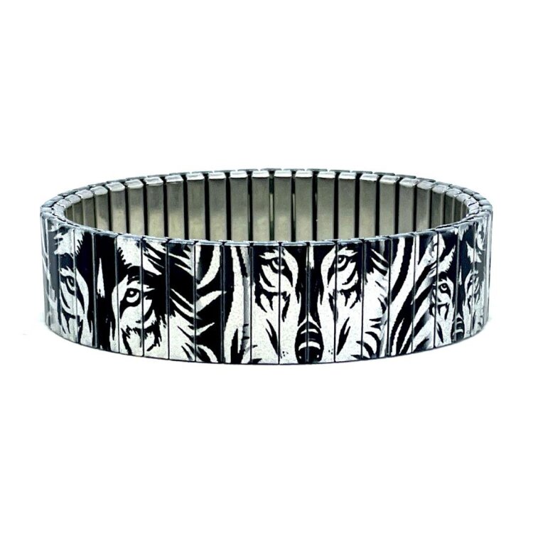 Stainless steel designer bracelet 18mm handmade in London - Tattoo wolves tribe Metallic