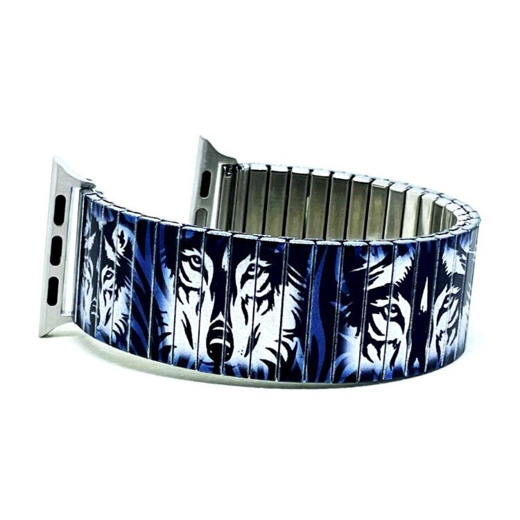 Stainless steel designer bracelet for smart watch 18mm handmade in London - Tattoo wolves hunt Metallic