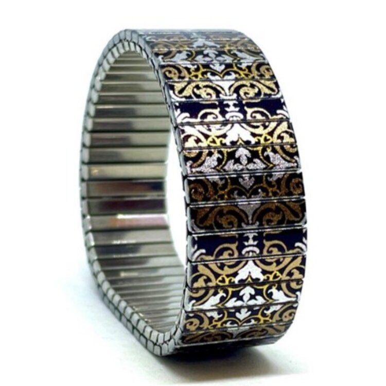 Stainless steel designer bracelet 18mm handmade in London - Tiles portuguese champagne Metallic