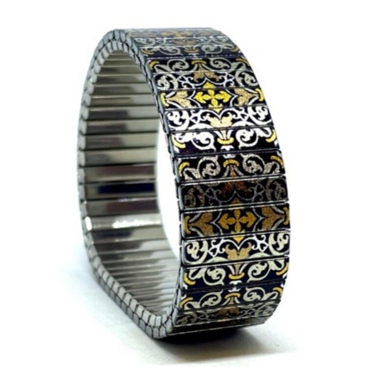 Stainless steel designer bracelet 18mm handmade in London - Tiles portuguese copper Metallic