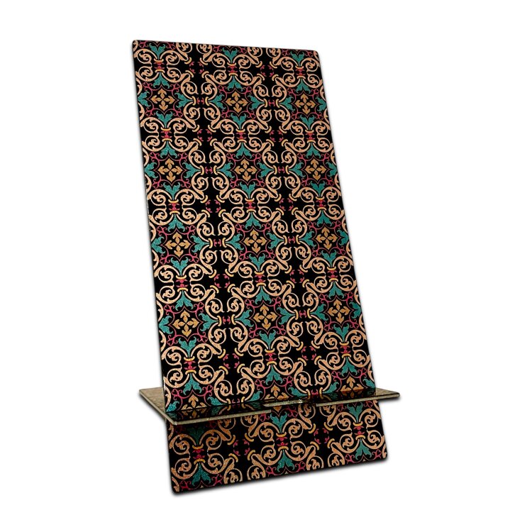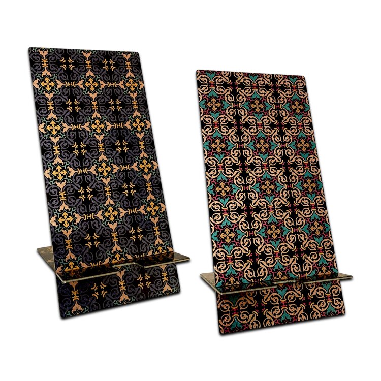 Stainless steel designer double-sided smartphone stand handmade in London - Tiles Alhambra Metallic
