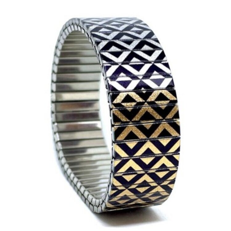 Stainless steel designer bracelet 18mm handmade in London - Triangles 2in1 gold silver Metallic