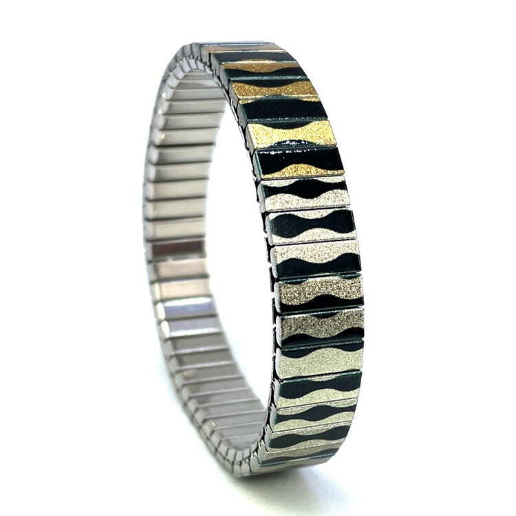Stainless steel designer bracelet 10mm handmade in London - Waves Drops 2in1 golden champagne Metallic