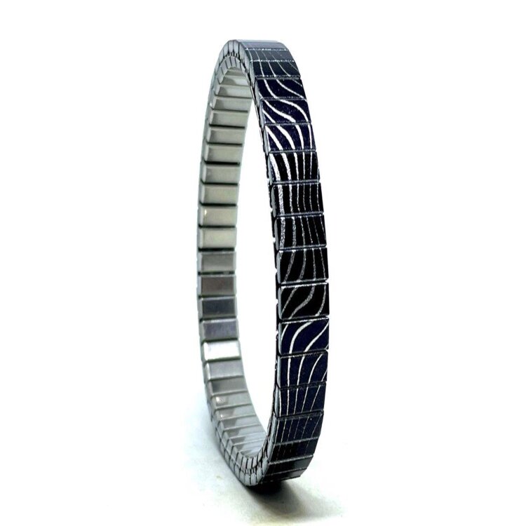 Stainless steel designer bracelet 6mm handmade in London - Waves Lines silver ripples Metallic