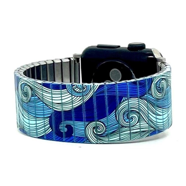 Stainless steel designer bracelet for smart watch 22mm handmade in London - Waves Lines Bondi beach