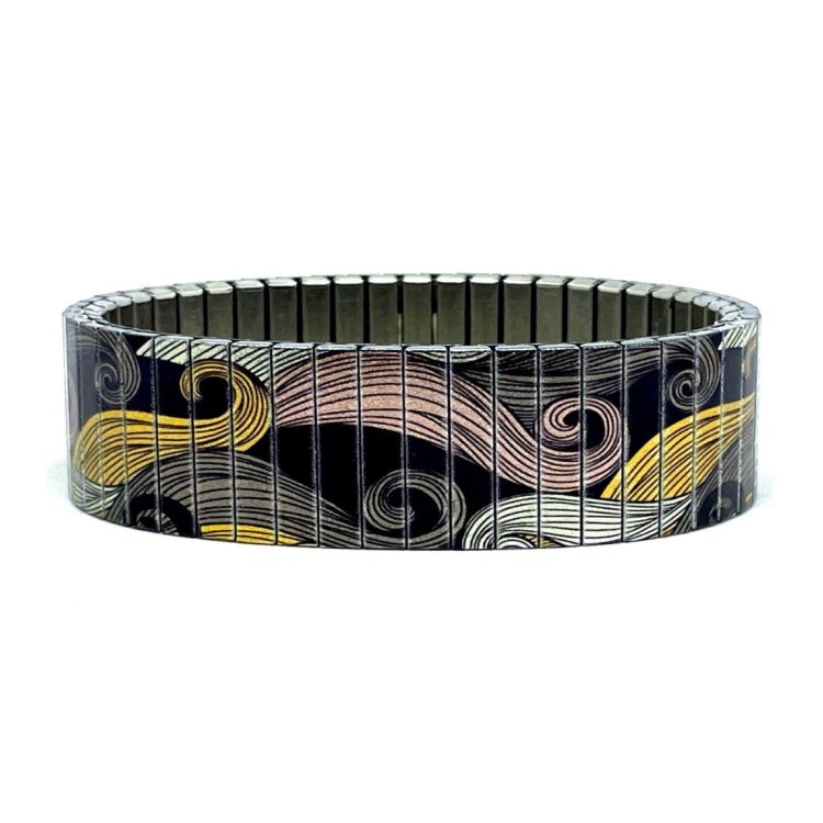 Stainless steel designer bracelet 18mm handmade in London - Waves Lines Santa Monica beach Metallic