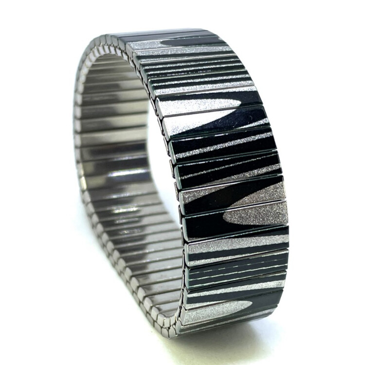 Stainless steel designer bracelet 18mm handmade in London - Waves Lines fancy black Metallic