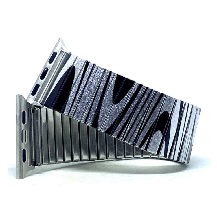 Stainless steel designer bracelet for smart watch 18mm handmade in London - Waves Lines fancy black Metallic