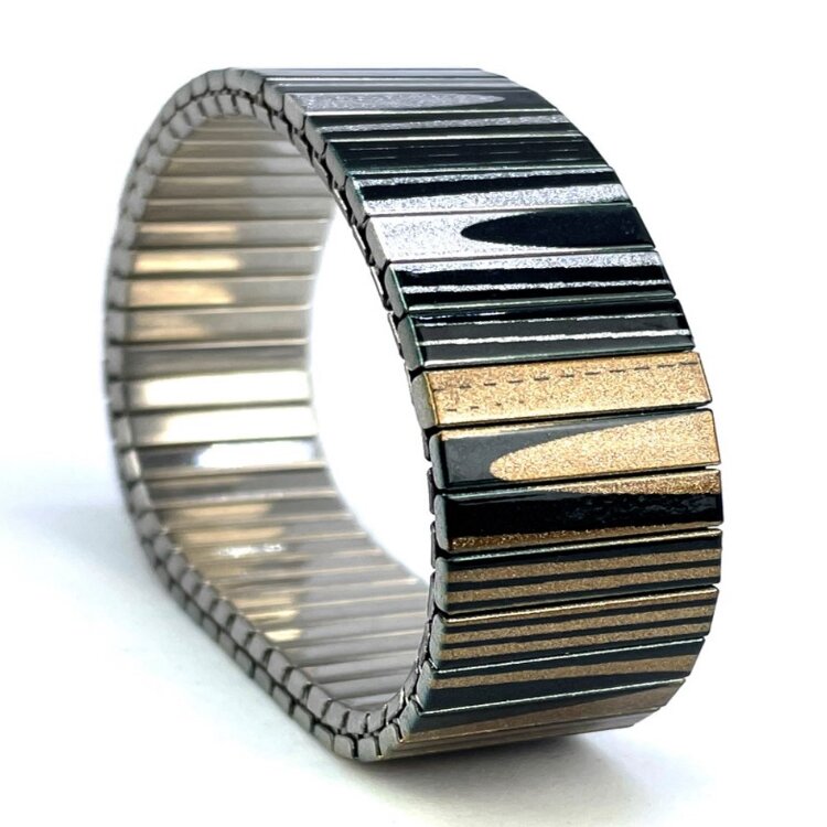 Stainless steel designer bracelet 22mm handmade in London - Waves Lines 2in1 earthy Metallic