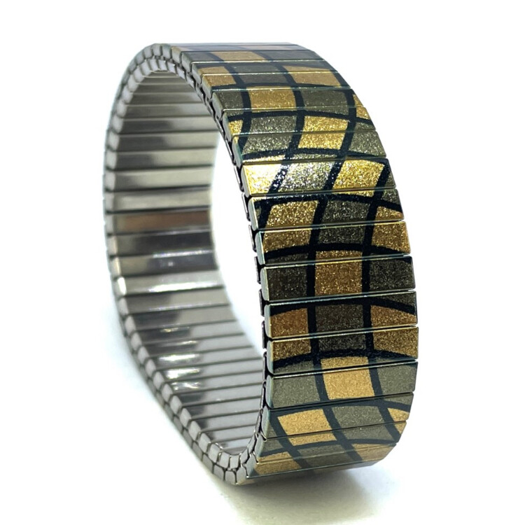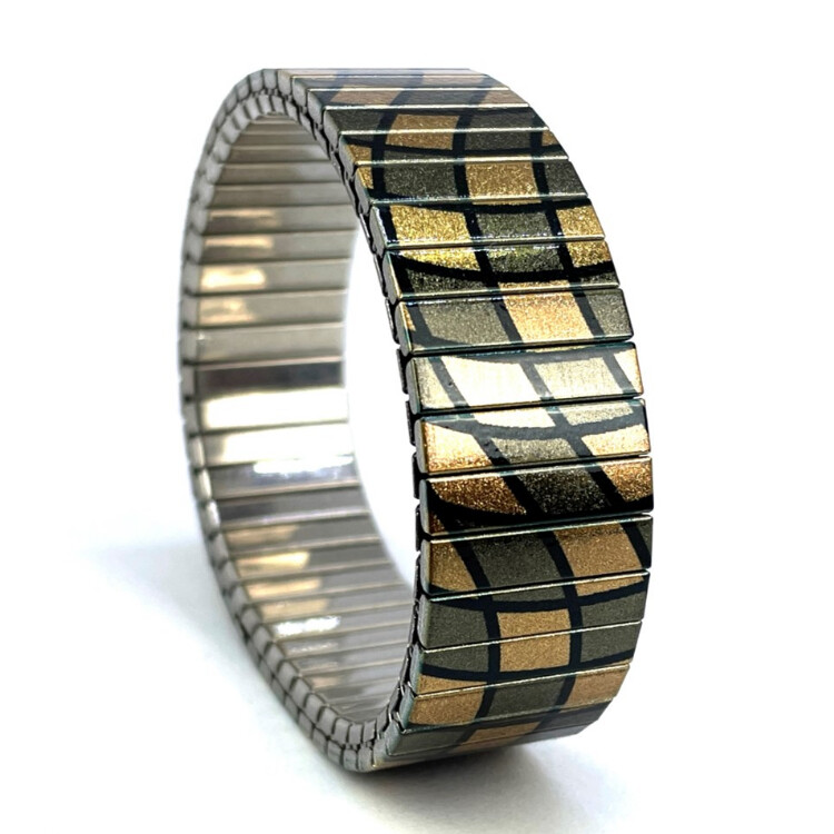 Stainless steel designer bracelet 18mm handmade in London - Waves Mosaic Corsica Metallic
