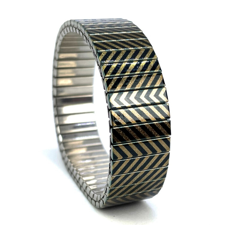 Stainless steel designer bracelet 18mm handmade in London - Zigzag black rose gold Metallic